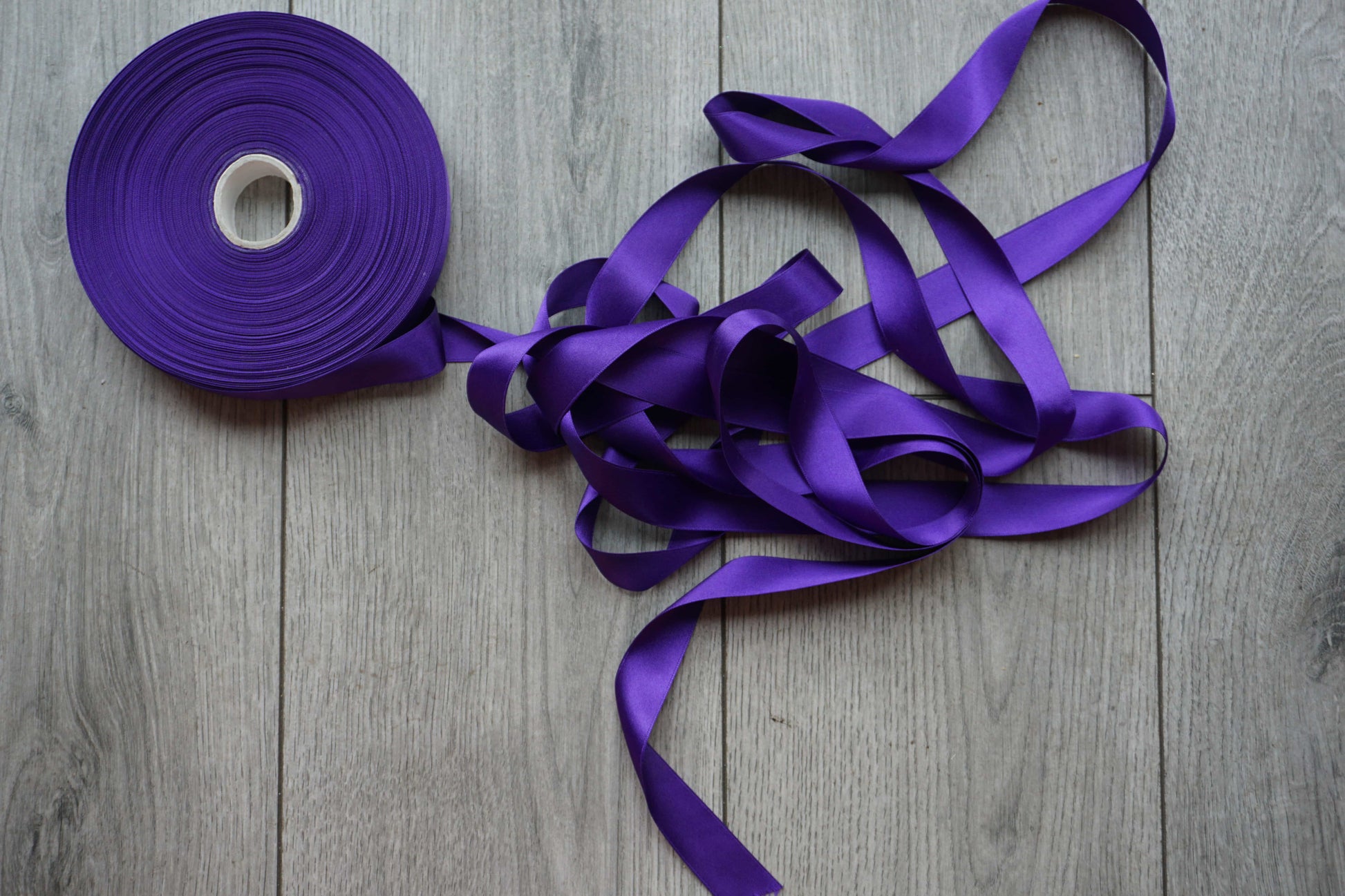 Add a touch of luxury to your projects with this purple satin ribbon. Perfect for gift wrapping, sewing, floral arrangements, decorations, and DIY crafts, its smooth satin finish and vibrant purple color create a stylish, polished look.