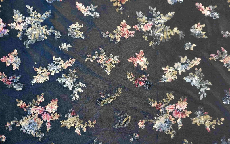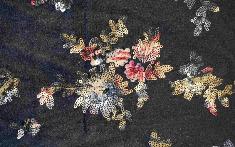 Black Velvet with Floral Sequin Design. Sold Per Meter