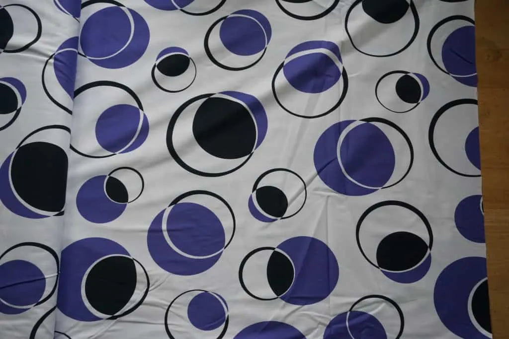 Blue circle patterned Stretch Cotton Sold Per Meter