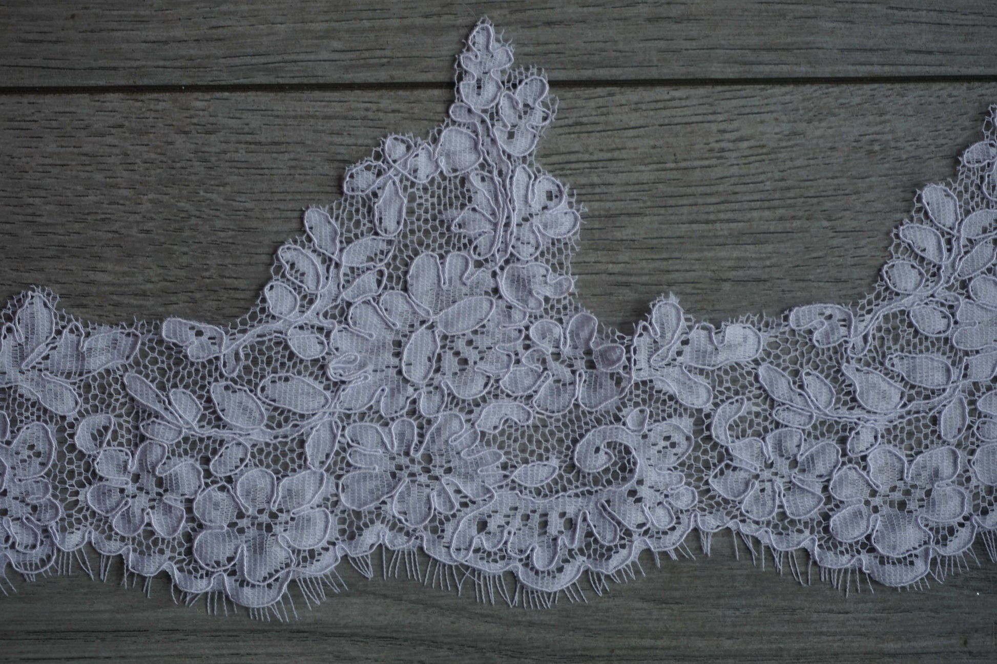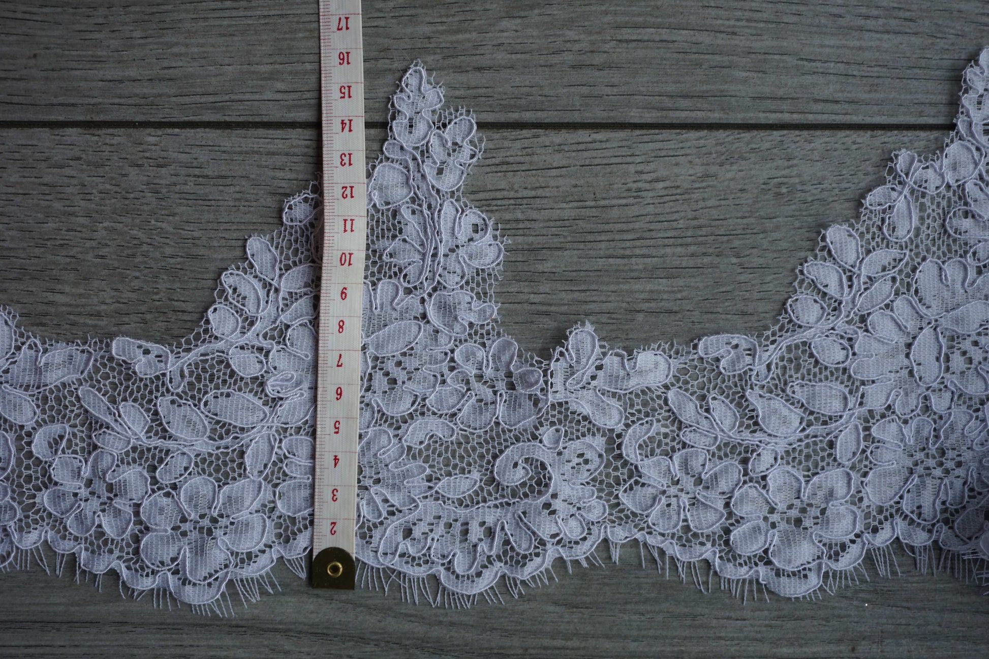Elegant lace trim with eyelash scalloped edge, perfect for bridal veils, dresses, lingerie, and couture detailing. Soft, delicate, and sold by the meter.