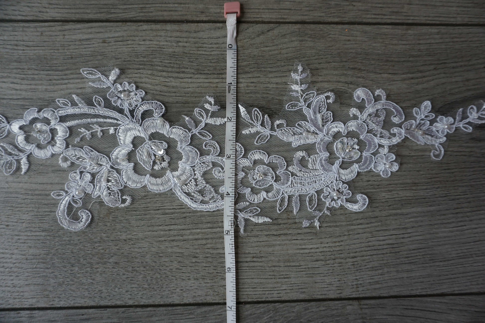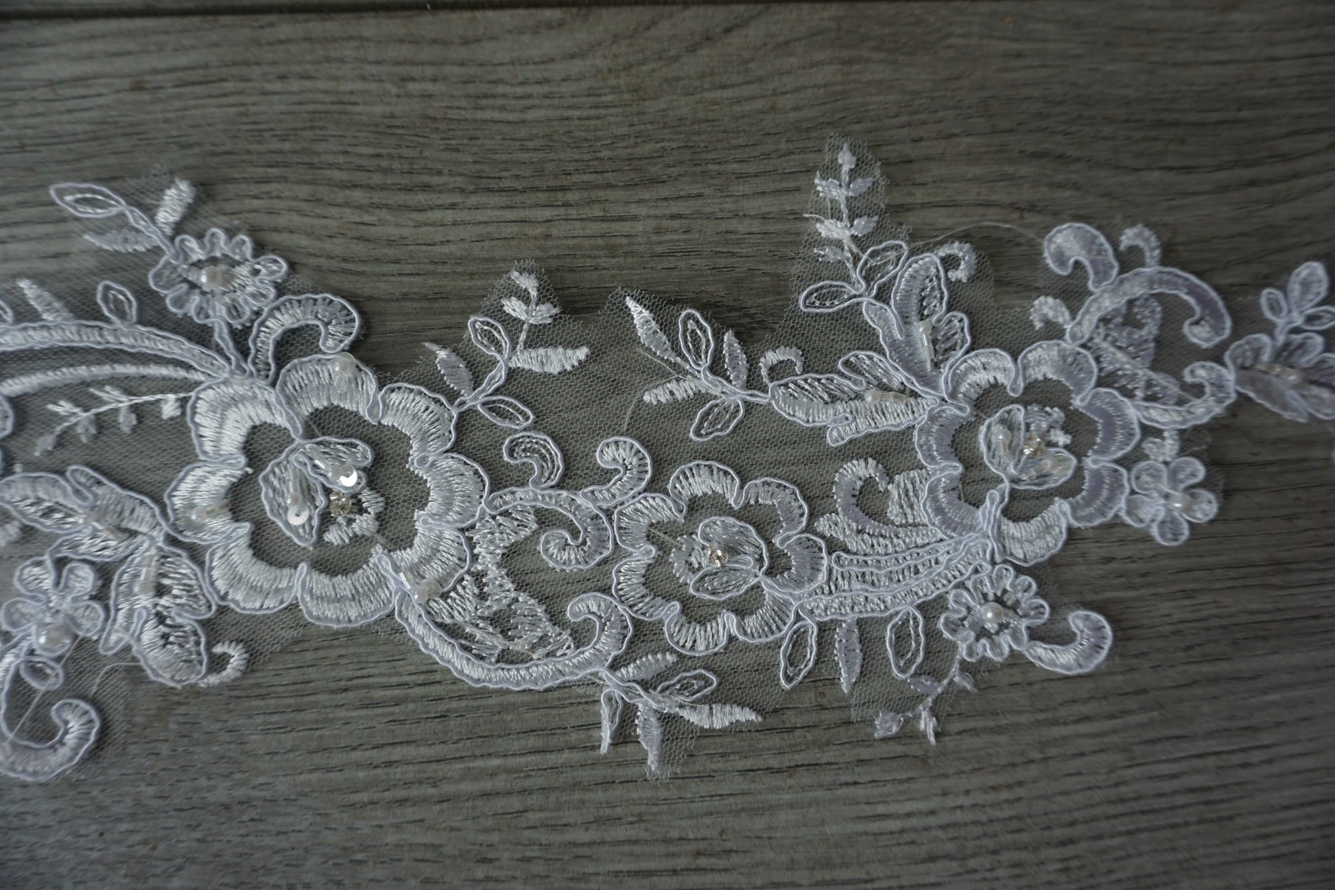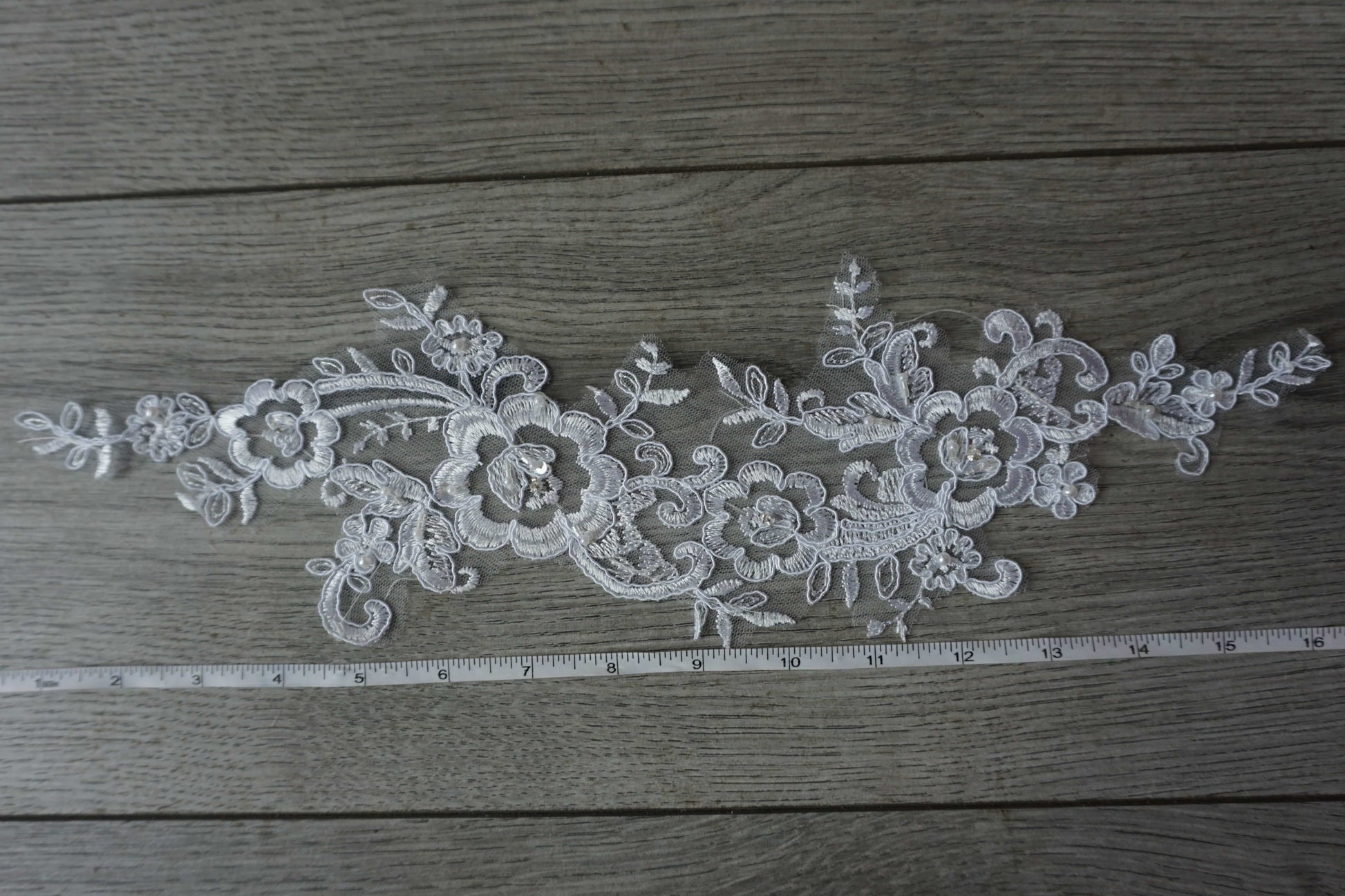 White Beaded Floral Lace Appliqué