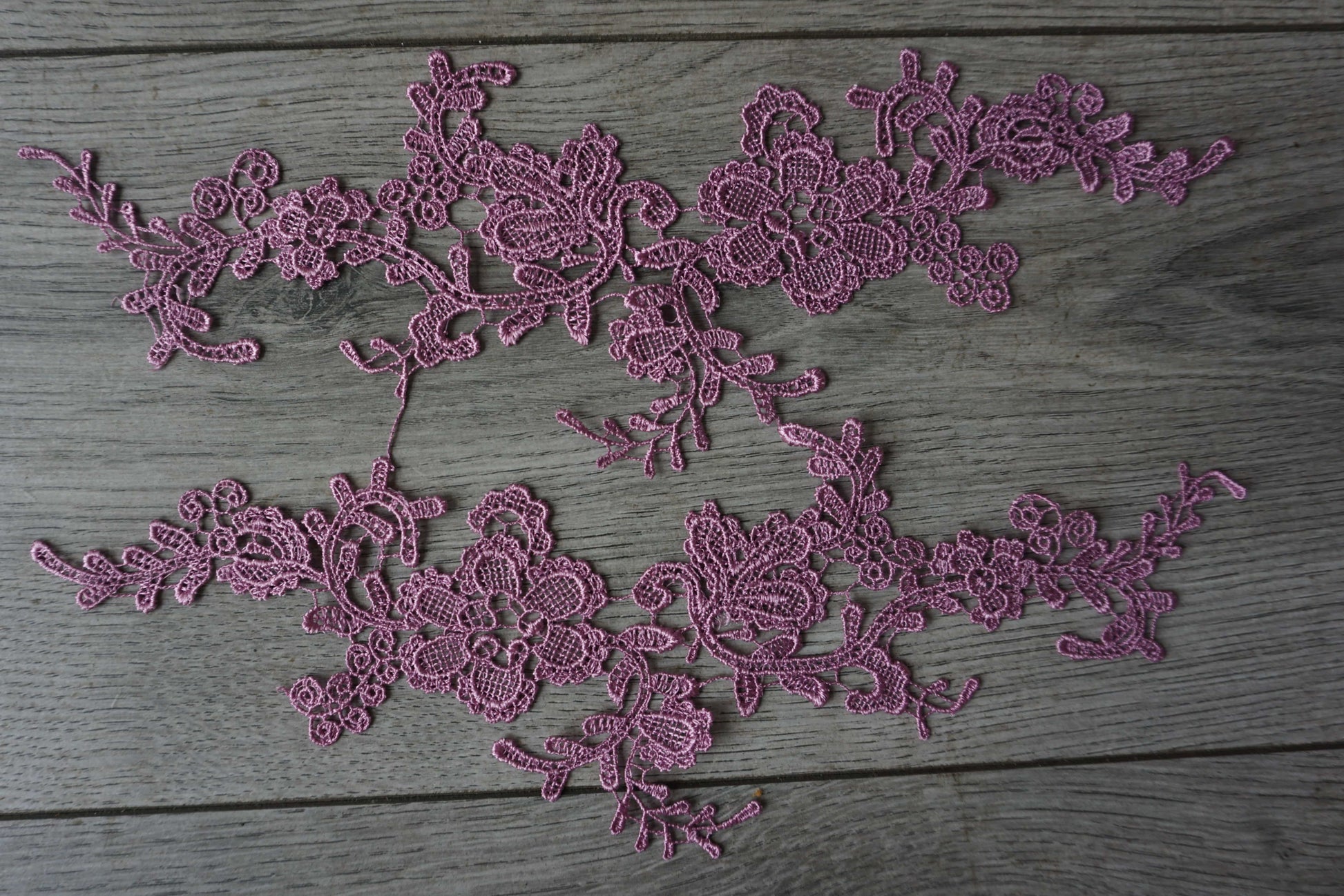 Bring a soft, romantic touch to your designs with this dusty pink floral lace appliqué. Featuring intricate embroidery with delicate flowers and leaves, this applique is ideal for adding elegance to dresses, blouses, dance costumes, bridal wear, and craft projects. Its lightweight yet detailed design makes it perfect for sewing, gluing, or layering onto fabrics.