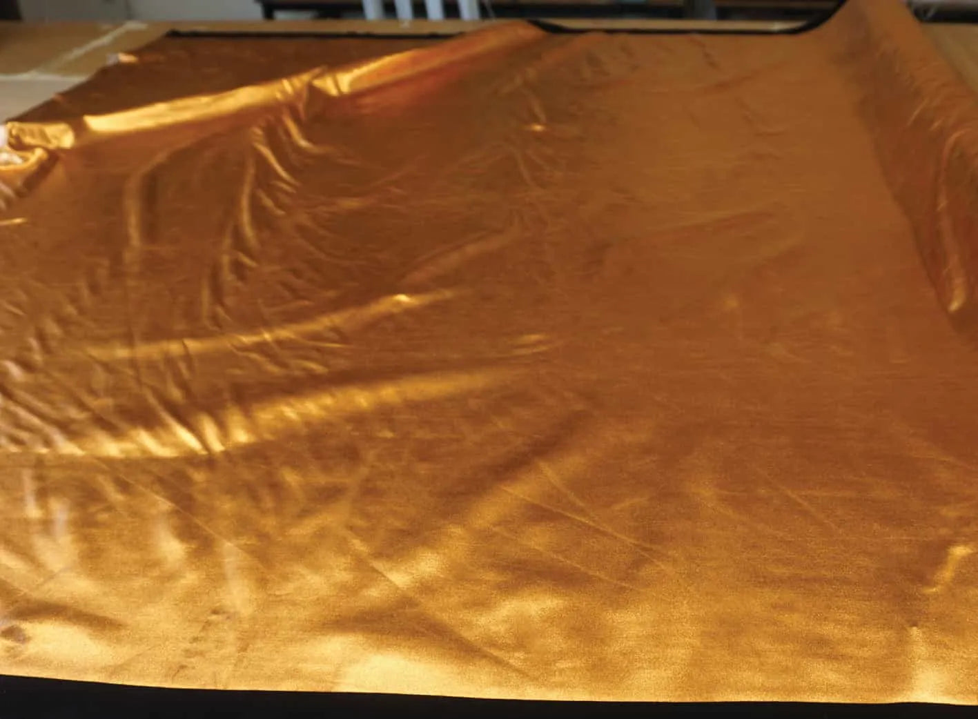 Metallic Orange lycra fabric with gold hue Sold Per Meter