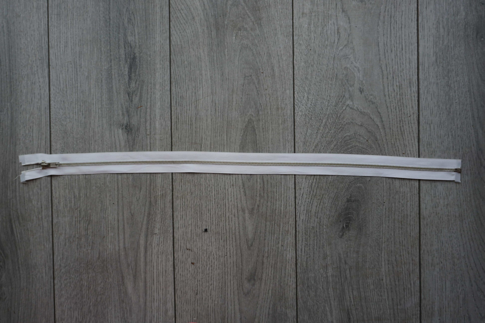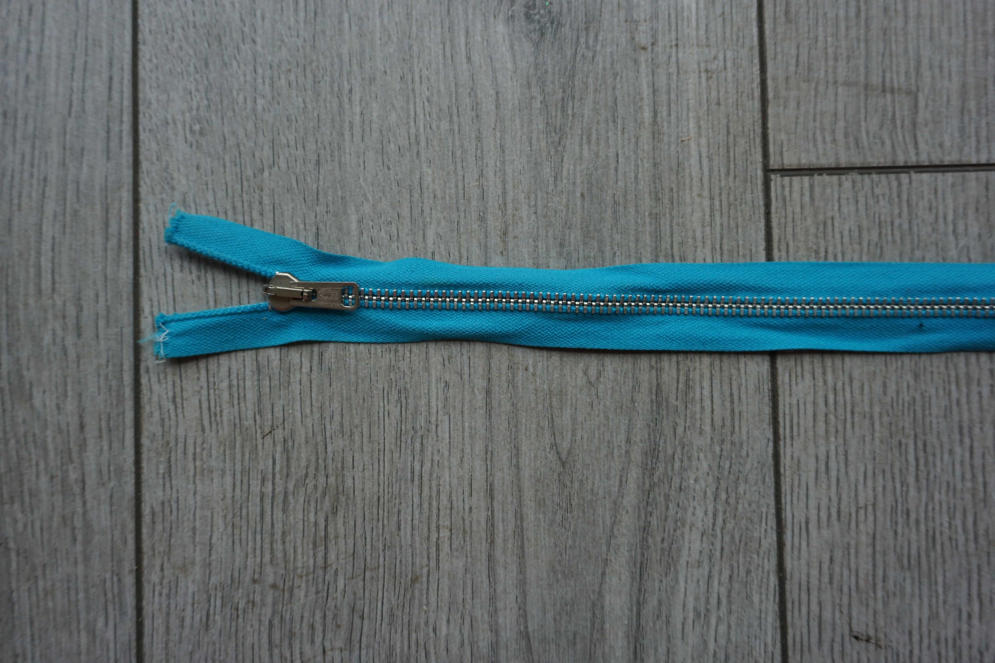 Add a stylish, functional finish to your garments and DIY projects with this open-ended silver metal zipper, available in white and turquoise. Perfect for jackets, coats, bags, and craft projects, its sturdy metal teeth ensure smooth operation and long-lasting durability.