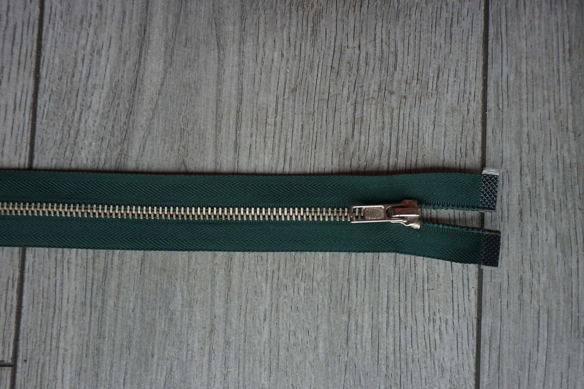 Add a stylish, functional touch to your garments and DIY projects with this open-ended dark green zipper featuring brass metal teeth. Perfect for jackets, coats, bags, and craft projects, its sturdy construction ensures smooth operation and long-lasting use.