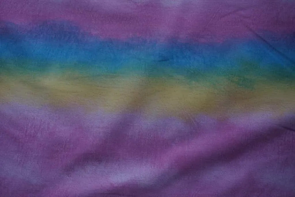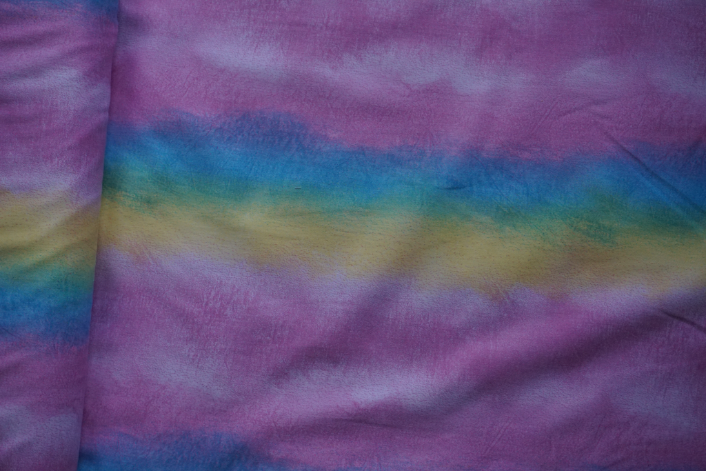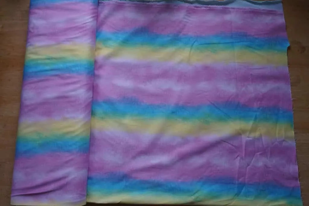 Pink, blue, and yellow rainbow-striped cotton fabric Sold Per Meter