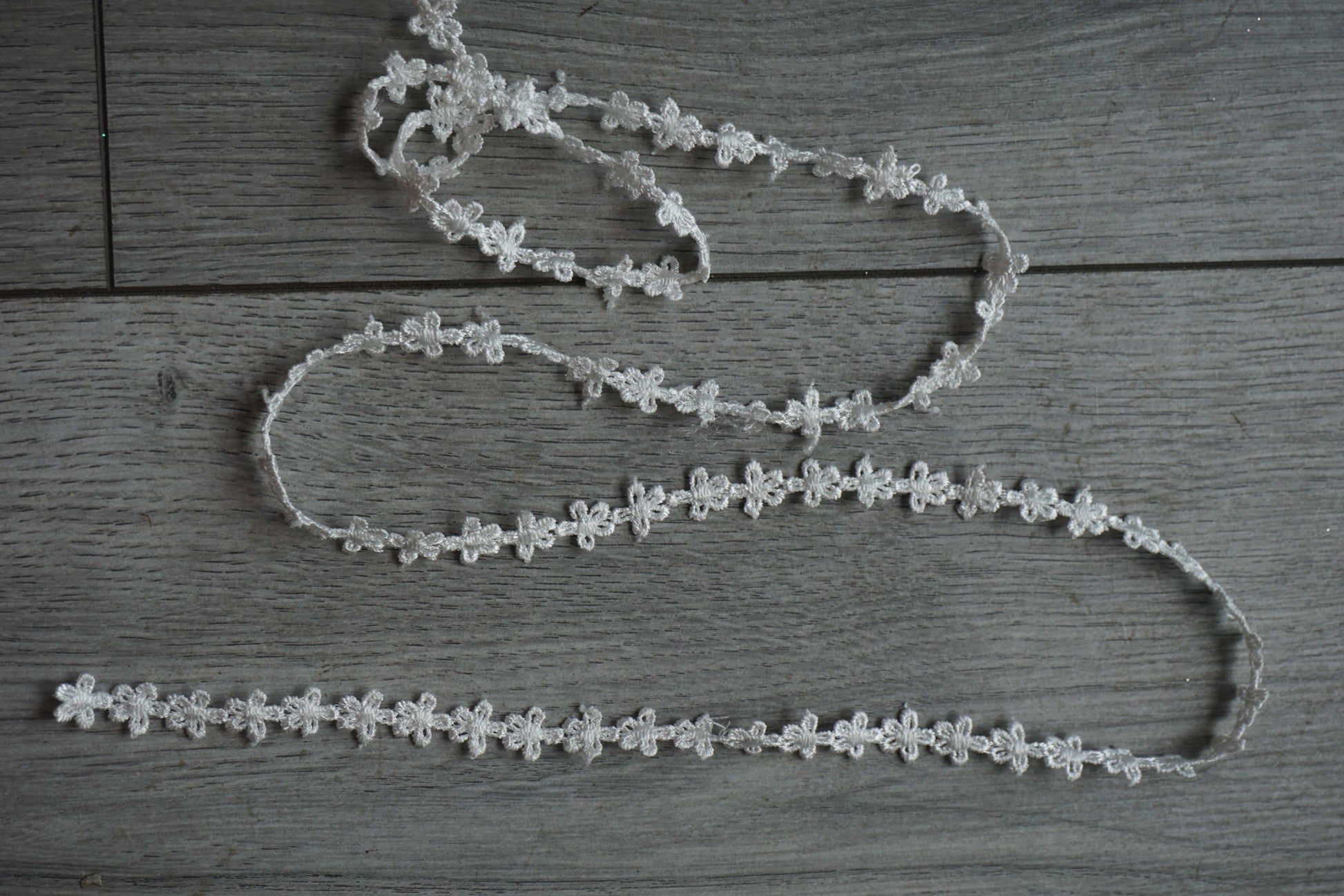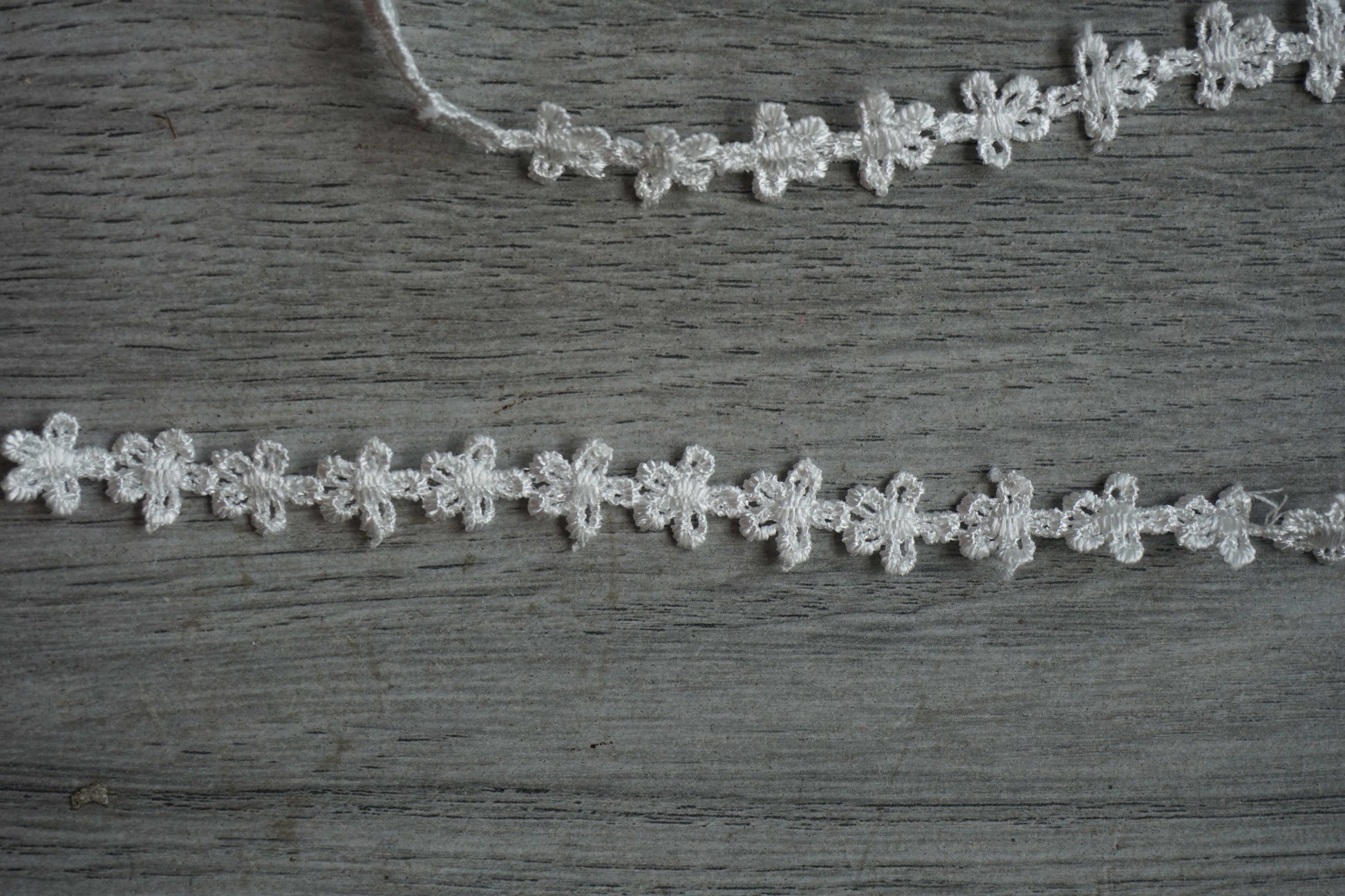 Add a playful, delicate touch to your projects with this daisy lace trim. Perfect for clothing, accessories, home décor, and DIY crafts, the floral daisy pattern brings a cheerful, vintage-inspired look. Ideal for hems, sleeves, table linens, or handmade gifts.