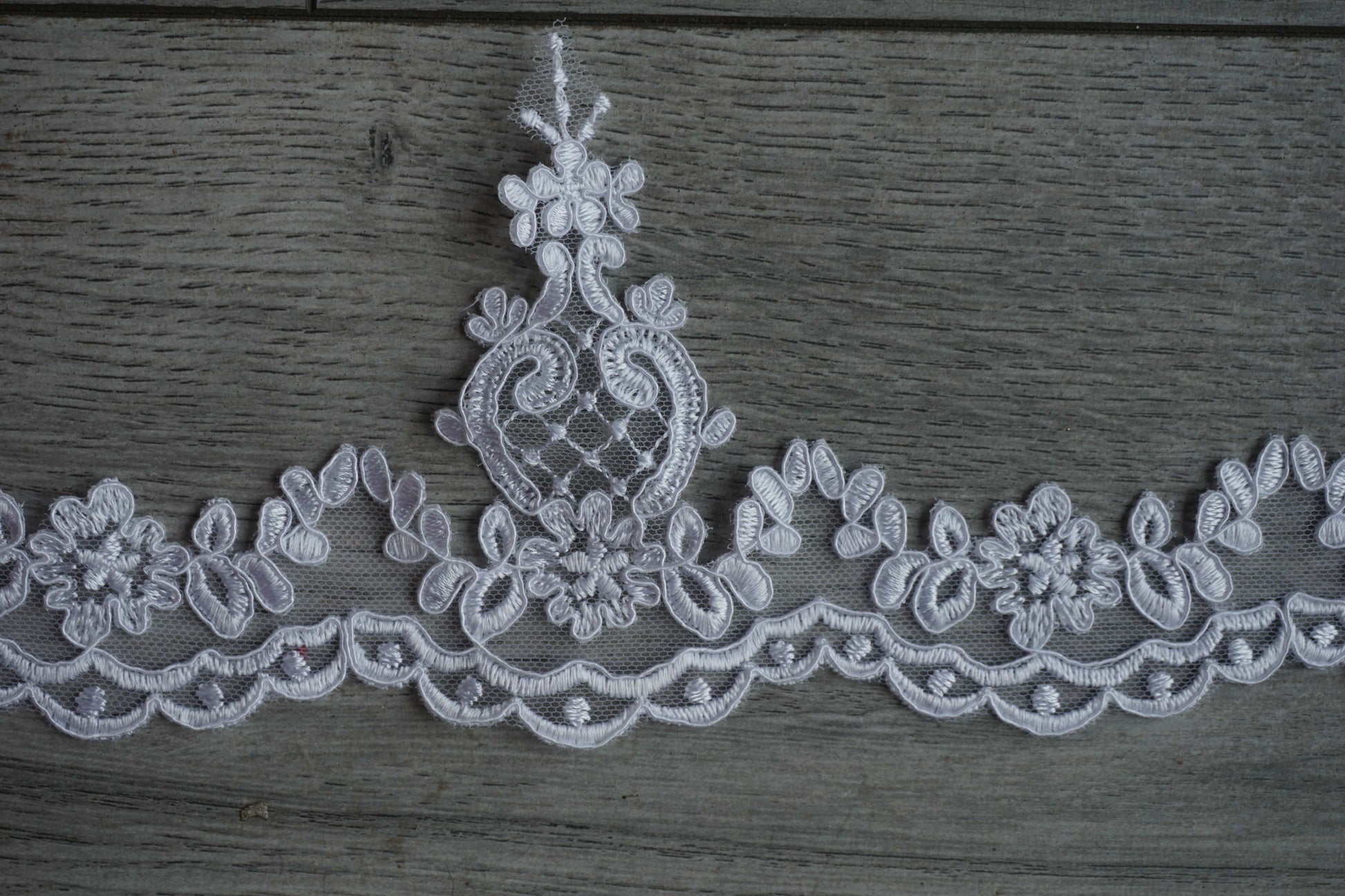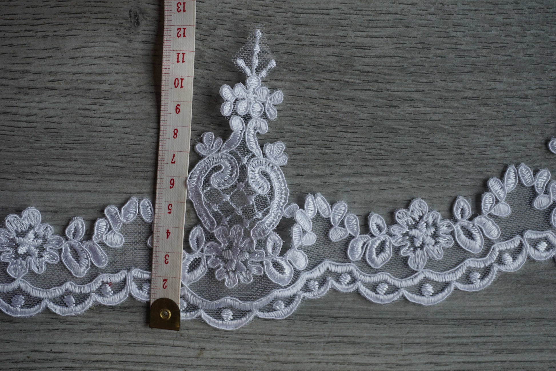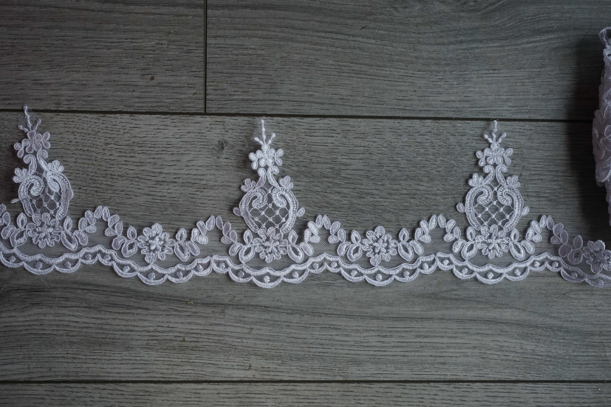 Enhance your sewing, DIY, and craft projects with this premium white lace trim with scalloped edge. Perfect for dressmaking, bridal wear, home décor, and accessories, this versatile lace adds a touch of elegance and sophistication. Its delicate scalloped design makes it ideal for finishing hems, embellishing table linens, curtains, costumes, and handmade gifts.