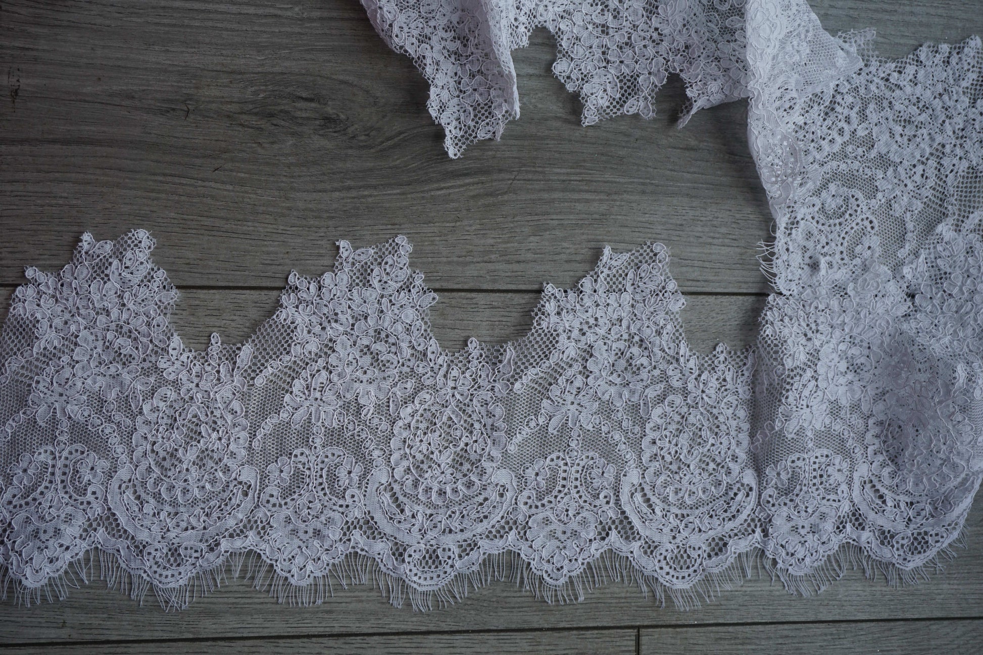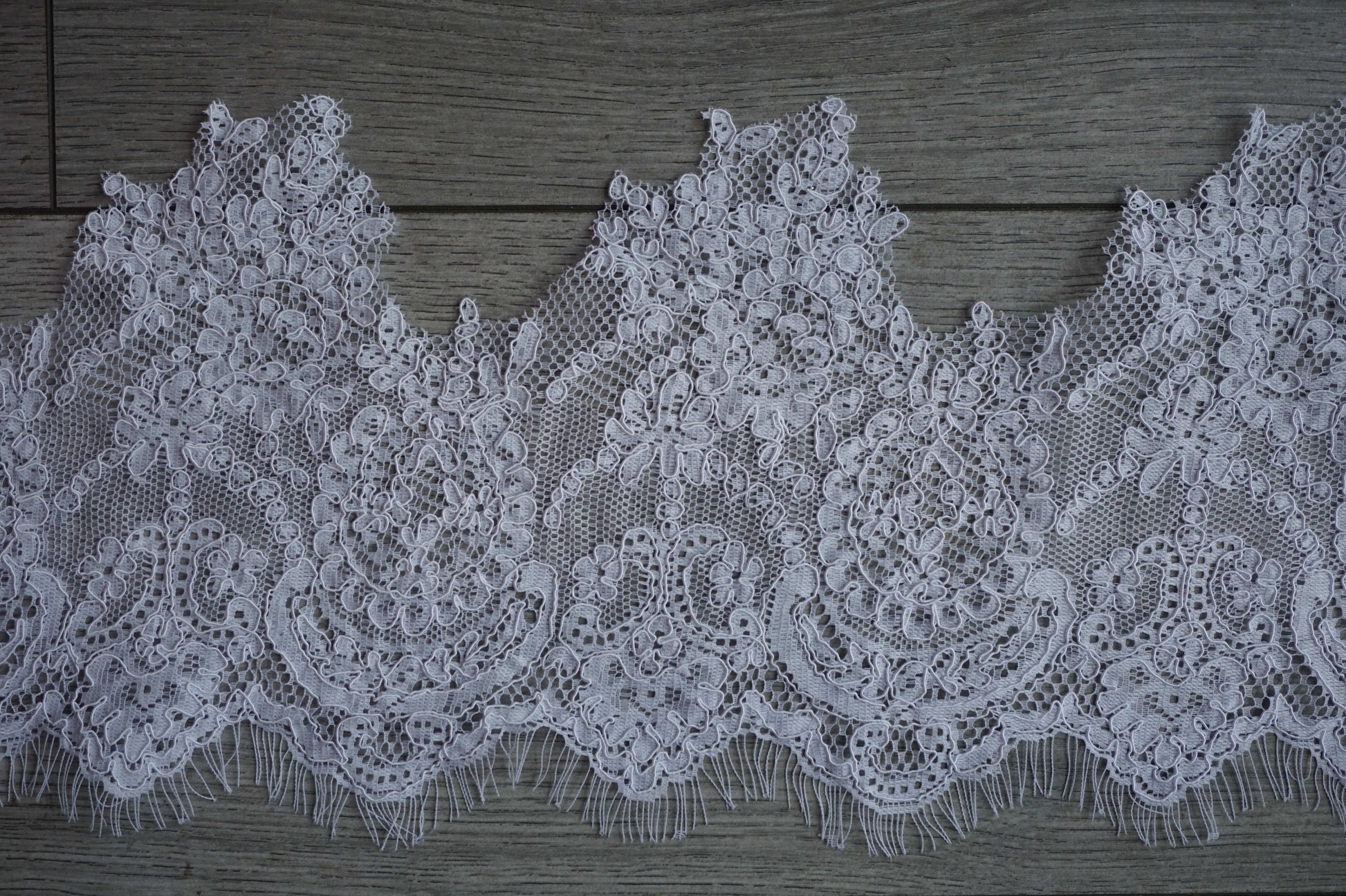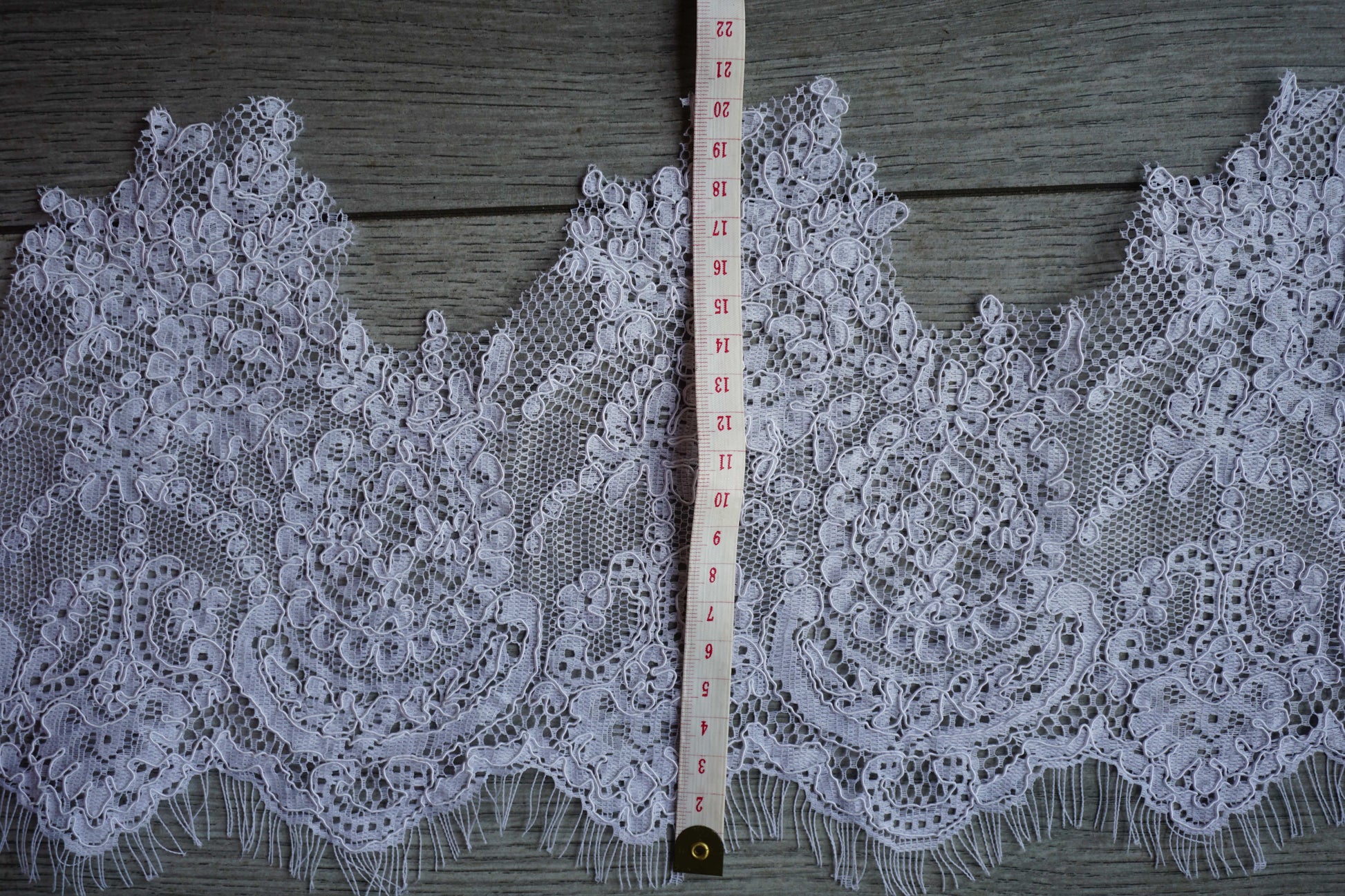Delicate and romantic, this Chantilly Lace Trim with Eyelash Scalloped Edge is the perfect finishing touch for bridal and couture designs. With its fine floral detailing and soft eyelash edging, it adds elegance and texture to veils, gowns, lingerie, and eveningwear.
